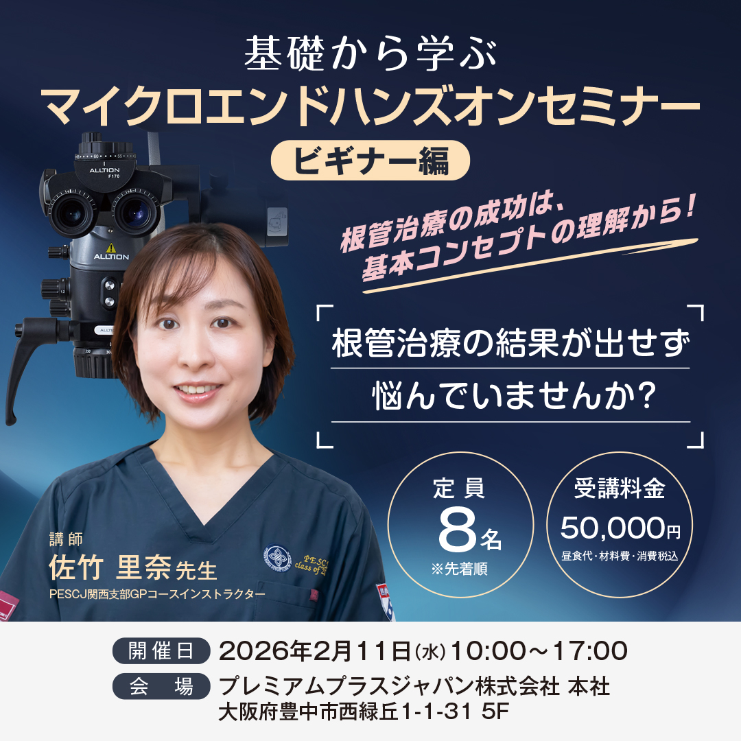 本セミナーではまず、根管治療の基本コンセプトを講義で体系的に学び、その理解をもとに二人一組でマイクロスコープを活用した実践的な実習を行います。