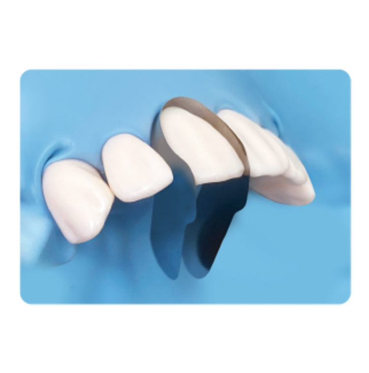 厚さ0.03mmの上顎前歯の形状にフィットするカーブ設計により、