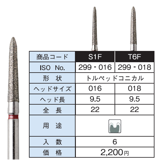 | T6F | ファイン トルペッドコニカル | 表参照 | ー | 6本 |