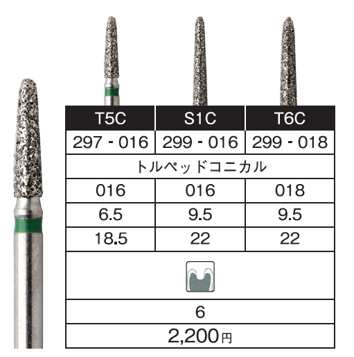 | T6C | コース トルペッドコニカル | 表参照 | ー | 6本 |