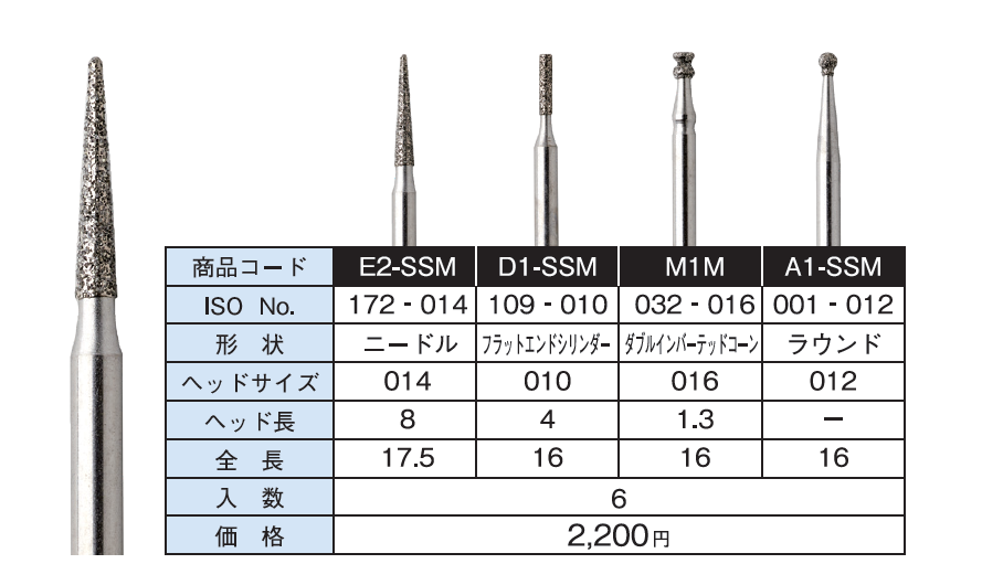| A1-SSM | ミディアム ラウンド | 表参照 | ー | 6本 |