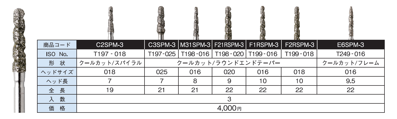 C3SPM-3 ミディアム クールカット/ラウンドエンドテーパー 表参照 2本