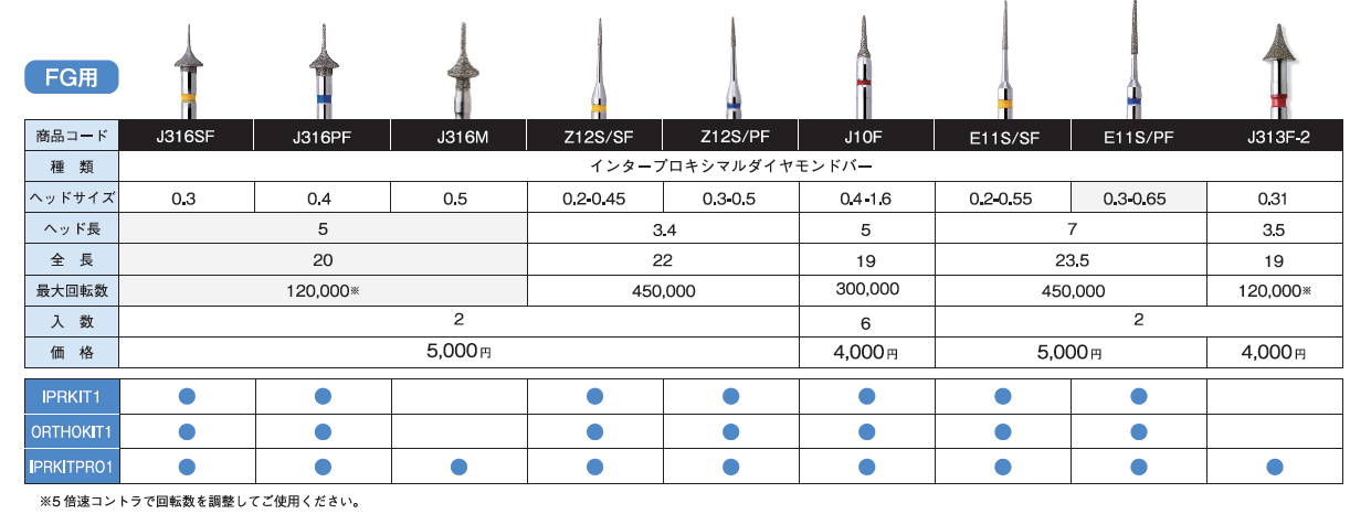 IPR、ディスキング用のダイヤモンドバー。