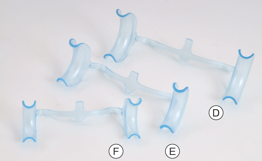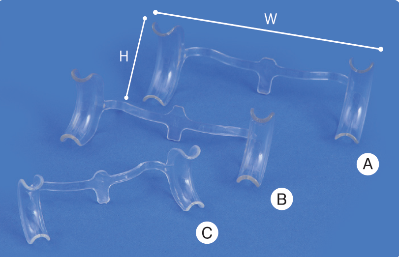 開口状態を保ち、中央部分で舌の動きも抑えられるリトラクター。
